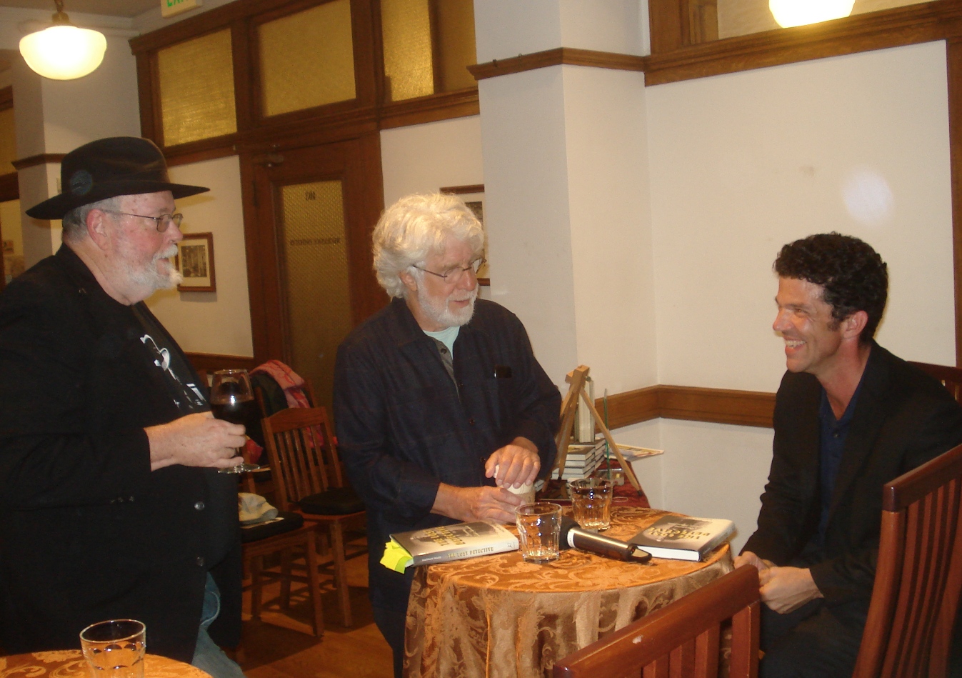 Image at top: holding down a table at the Mechanics’ Library talk while Nathan Ward merrily signs a copy of his new bio of Hammett.