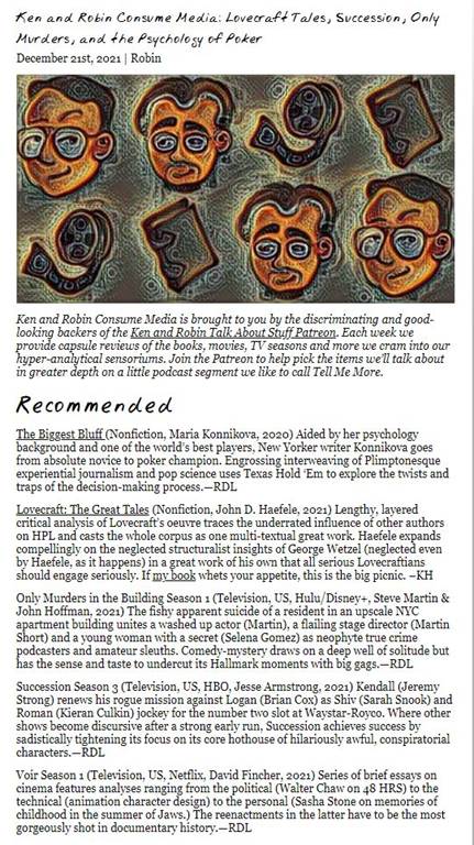 And the guy knows a great book on Lovecraft when he sees one.