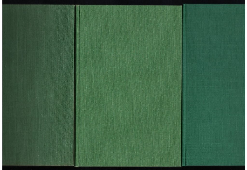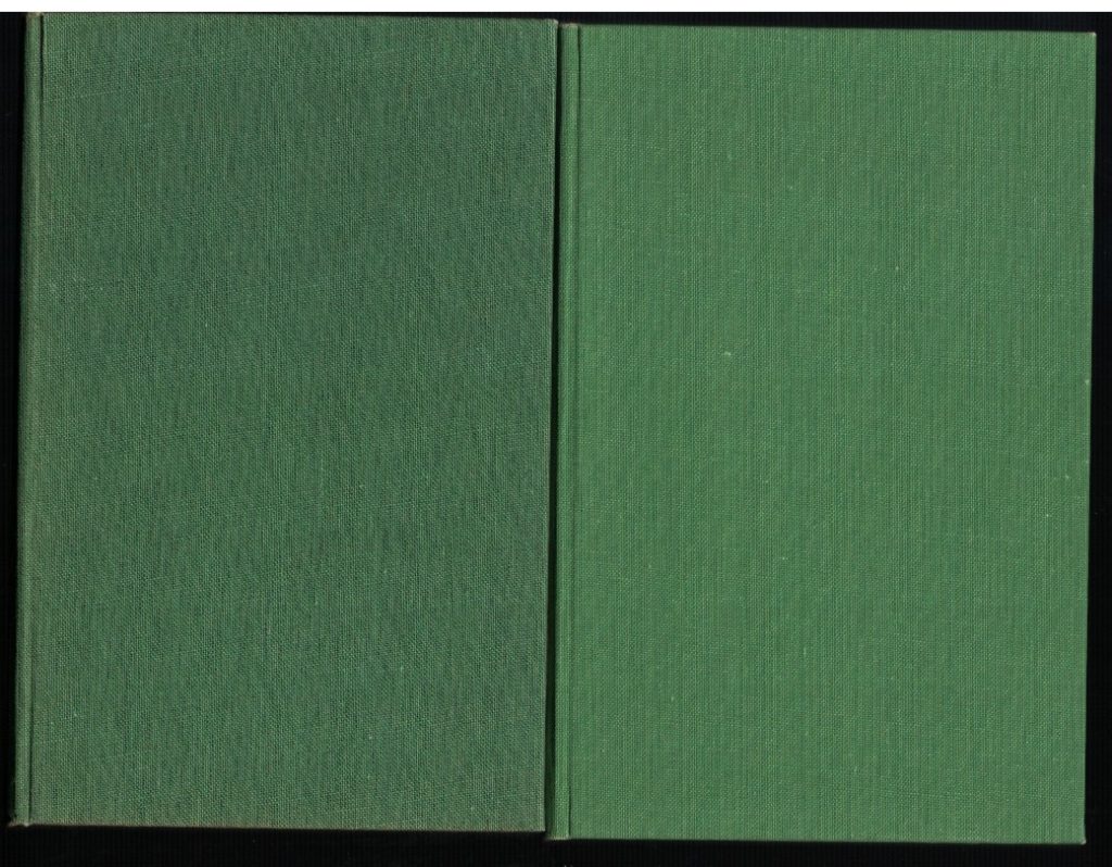 “In the three-book scan, the old ‘forest green’ copy has been added on the right (‘olive’ still on the left with ‘new’ in the middle):