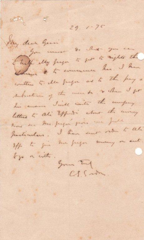 The signed note by General Gordon is from January 29, 1875, and is one of two items I have with the brave man’s scribble.