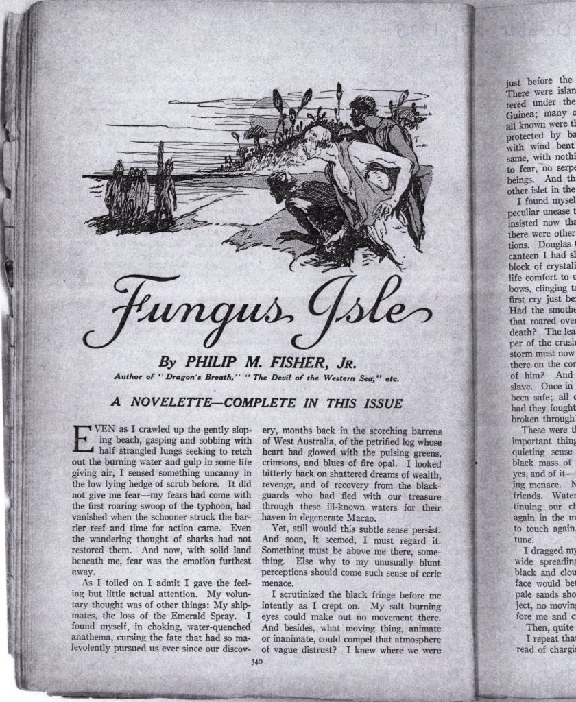 Kevin says, “Dave Saunders tells me that the Argosy All-Story Weekly illustration for ‘Fungus Isle’ was by John R. Neill.