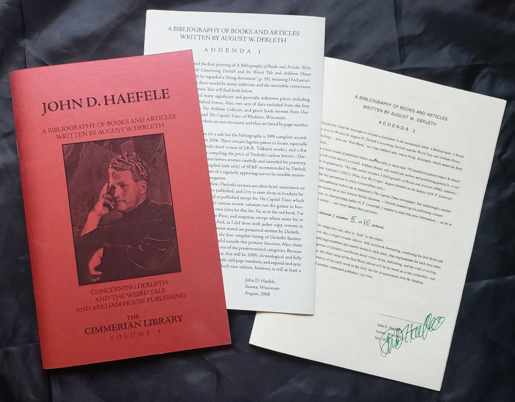 On July 29 I found a little packet in the mailbox, with the completely unexpected second addenda to John D. Haefele’s working bibliography of August Derleth enclosed.