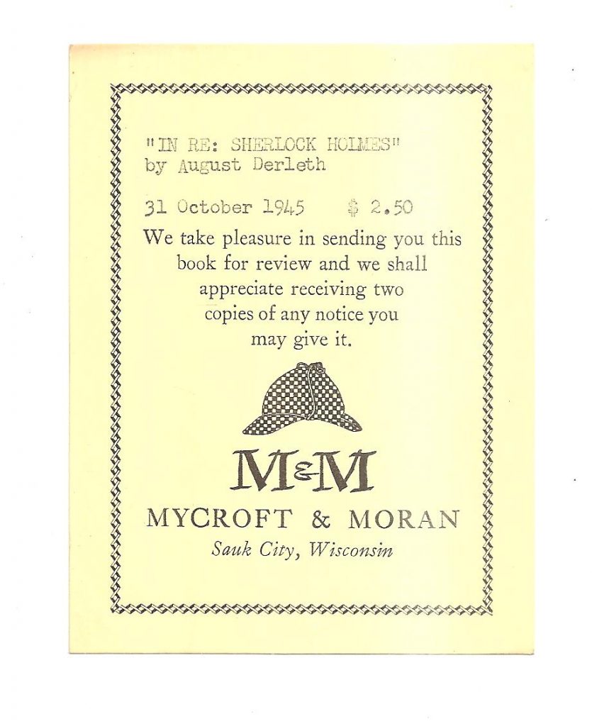 Derleth: IN RE: SHERLOCK HOLMES [slip]