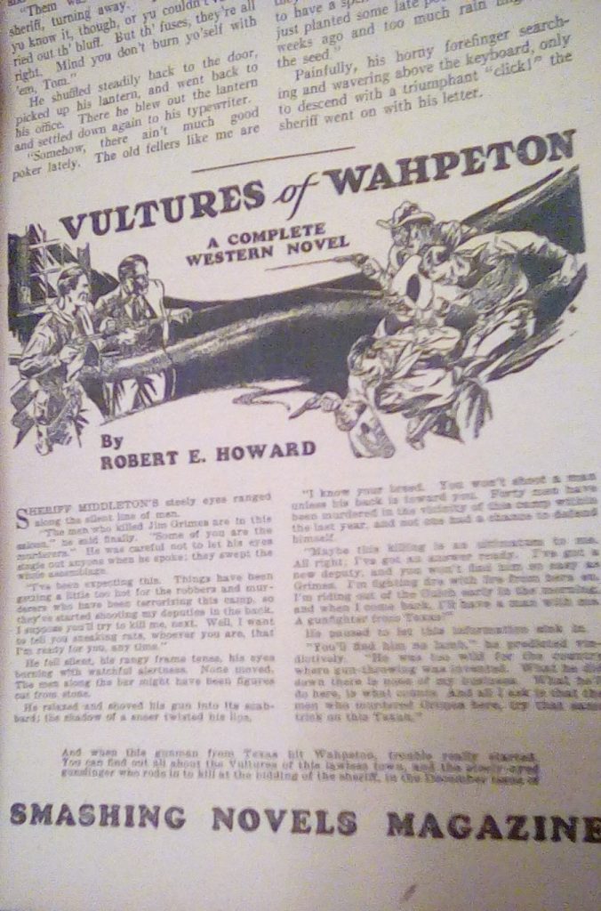 “I’ve been watching this, Don. Never knew that the first page of Howard’s ‘Vultures of Wahpeton’ appeared in this western mag, and I don’t think many others did either.